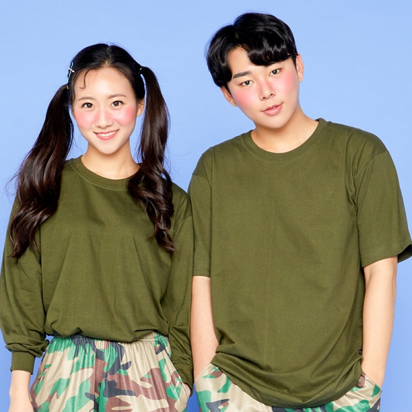라운드 티셔츠 [카키-반팔/긴팔]