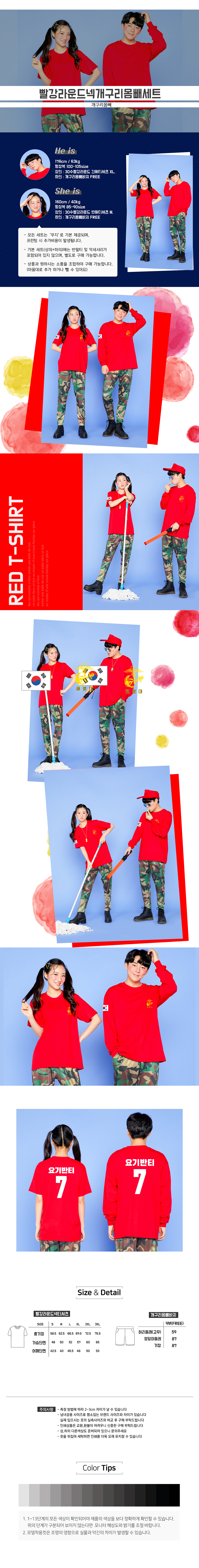 라운드 티셔츠 [레드 - 반팔/긴팔] + 개구리몸빼